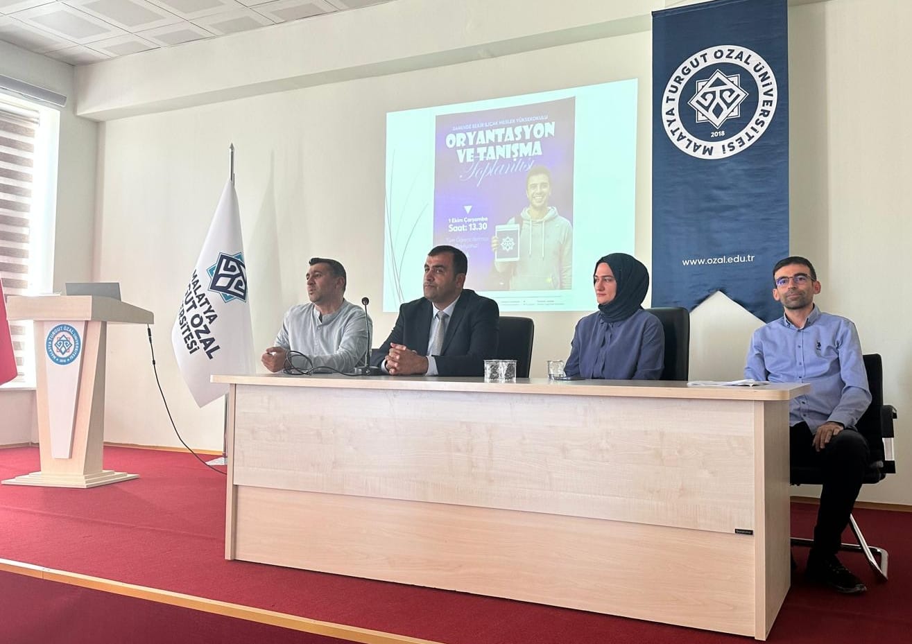 2025-2026 Eğitim-Öğretim Yılının başlamasıyla birlikte, yeni kayıt yaptıran öğrencilerimizin okula uyum sürecini kolaylaştırmak amacıyla yüksekokulumuzda 01.10.2025 Tarihinde Oryantasyon Toplantısı gerçekleştirildi. Yoğun katılımla gerçekleşen toplantı, Meslek Yüksekokul Müdürü Dr. Öğr. Üyesi Kadir DOĞANŞAHİN, Yüksekokul Sekreteri Akif ATEŞ'in yanı sıra akademik ve idari personellerin de katılımıyla düzenlendi. Toplantının açılışında, Meslek Yüksekokul Müdürü Dr. Öğr. Üyesi Kadir DOĞANŞAHİN yeni öğrencilere hoş geldiniz diyerek başarı dileklerini iletti. Programda Öğr. Gör. Berfin OKTAY tarafından öğrencilere yönelik kapsamlı bir sunum yapıldı. Öğr. Gör. OKTAY, eğitim-öğretime ilişkin önemli bilgiler aktararak ders işleyişleri, akademik takvim ve öğrenci danışmanlık hizmetleri gibi konularda detaylı açıklamalarda bulundu. Ardından söz alan Yüksekokul Sekreteri Akif ATEŞ ise yüksekokulun genel kuralları, idari işleyişi, kampüs olanakları ve öğrenciler için kritik önem taşıyan diğer idari süreçler hakkında bilgilendirme yaptı. Bilgilendirme sunumlarının ardından öğrencilerden gelen sorular yanıtlandı. Öğrencilerin merak ettikleri konular hakkında yetkililer tarafından verilen detaylı cevaplarla toplantı verimli bir şekilde son buldu. Yapılan bu oryantasyon toplantısı ile 2025-2026 eğitim-öğretim yılına güçlü bir başlangıç yapılması ve yeni öğrencilerin adaptasyon sürecinin hızlandırılması amaçlanıyor.