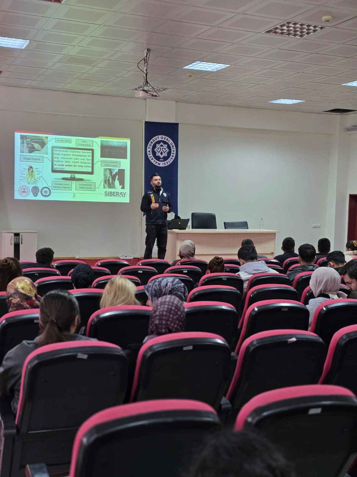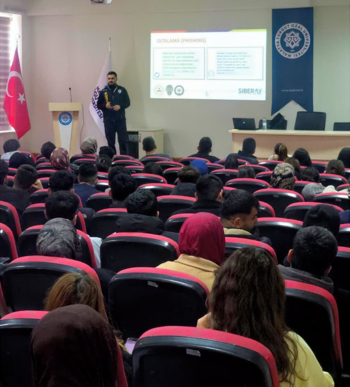 Malatya Turgut Özal Üniversitesi ve Emniyet birimleri iş birliği kapsamında, öğrencilerimize yönelik "Siber Güvenlik ve Sosyal Medya Kullanımı" konulu bilgilendirme semineri gerçekleştirildi. 02 Nisan 2026 tarihinde, Darende Bekir Ilıcak Meslek Yüksekokulu Konferans Salonu’nda düzenlenen etkinlikte, öğrencilerimiz dijital dünyadaki tehditler ve güvenli internet kullanımı hakkında uzmanlar tarafından bilgilendirildi. Malatya İl Emniyet Müdürlüğü Siber Suçlarla Mücadele Şube Müdürlüğü personelleri tarafından verilen seminerde; “Siber Güvenlik ve Sosyal Medya Kullanımı” ile “Siber Güvenlik ve Güvenli İnternet” başlıkları ele alındı. İnternet ortamında karşılaşılabilecek dolandırıcılık yöntemleri, kişisel verilerin korunması ve sosyal medyanın bilinçli kullanımı konularında hayati bilgiler paylaşıldı. Saat 11:30’da başlayan ve yoğun katılımın gözlendiği seminerde, siber suçlarla mücadelenin önemi vurgulanırken öğrencilerin soruları da uzman personeller tarafından yanıtlandı. Bu tür eğitim faaliyetleriyle, öğrencilerimizin dijital ortamlarda daha güvenli hareket etmeleri ve farkındalıklarının artırılması hedeflenmektedir. Yüksekokul yönetimimiz, değerli katkılarından dolayı Emniyet Müdürlüğü personeline teşekkürlerini iletti.